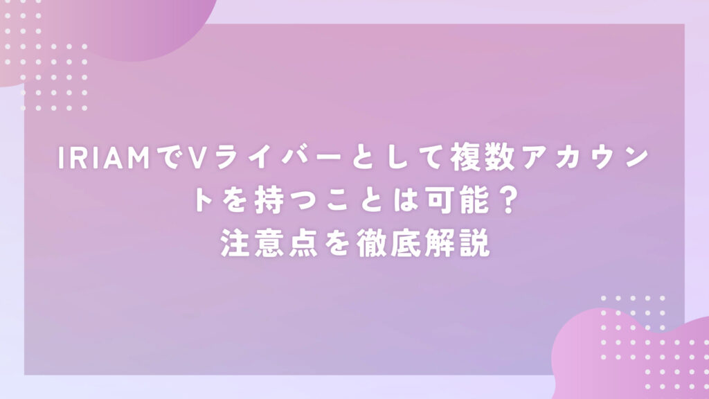 IRIAM(イリアム)は、スマホ一つで手軽にバーチャルライバー(Vライバー)として活動できる人気のライブ配信アプリです。Vライバーとして活動する中で、複数アカウントの運用を検討する人も少なくありません。